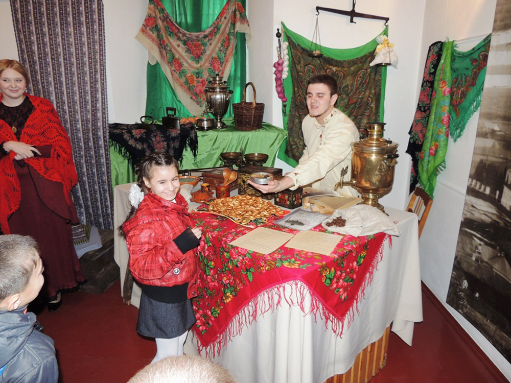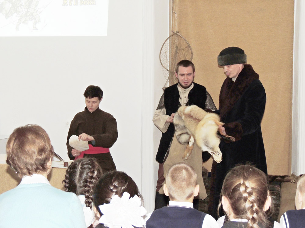 В филиале Новокузнецкого краеведческого музея сотрудники предстали перед нами в образе первых обитателей Кузнецкого острога. Встреча с кузнецким воеводой приоткрыла нам некоторые тайны его жителей. Благодаря замечательной игре «актёров» мы прониклись сочувствием к вдове Ульяне Кондратьевой, жительнице села Терехина Кузнецкого уезда, к простой девке-татарке Айсу Бежбояковой, поняли, насколько тяжело жилось людям в то непростое время, когда приходилось держать оборону от воинственных соседей – сибирских калмыков, телеутов, решать хозяйственные и бытовые вопросы. Все персонажи театрализованного представления не вымышленные, а в прошлом жители Кузнецка. Образ воеводы Фёдора Ивановича Голенищева-Кутузова в исполнении Петра Петровича Лизогуба получился очень убедительным: воевода чтит государя, исполняет его указы, он рачительный хозяин, уважительно относится к людям, решает их споры. Поэтому, когда пришла тревожная весть и воевода призвал всех идти на бой с «государевыми не послушниками и изменниками – чёрными киргызами» за Землю Кузнецкую, кое-кто из ребятишек и вправду заторопился к выходу…