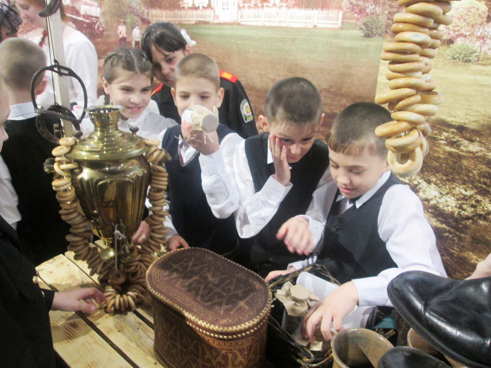 Экскурсия началась в Новокузнецком художественном музее. С первых шагов мы пришли в изумление: в стенах музея был сотворен центр уездного города Кузнецка, мы вмиг оказались на Базарной площади! Лавки ломились от изобилия разнообразных товаров, каждый хозяин зычно расхваливал свой товар и всячески заманивал нас к себе… Перед ловкими лавочниками не устояли не только ребятишки, но и ветераны… Любовь Михайловна никак не могла выбрать посадский платок, Андрей Гаврилович присматривал себе хромовые сапоги, ребята крутились у стола с горячим самоваром и ароматными баранками, примеряли фуражки, и даже интересовались средством от клопов и тараканов … Это было увлекательное путешествие во времени и пространстве. Поразил необычный формат экспозиции. Мы стали участниками неожиданных событий, познакомились с реальными и выдуманными историями из далекого прошлого любимого города.