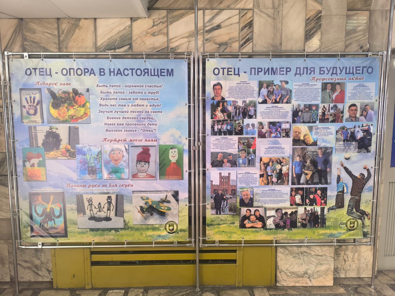 Также, по инициативе женского совета, в административно-бытовом корпусе № 1 появился тематический стенд «Отец – опора в настоящем. Отец – пример для будущего». Его украсили детские рисунки и семейные фотографии профсоюзных активистов.