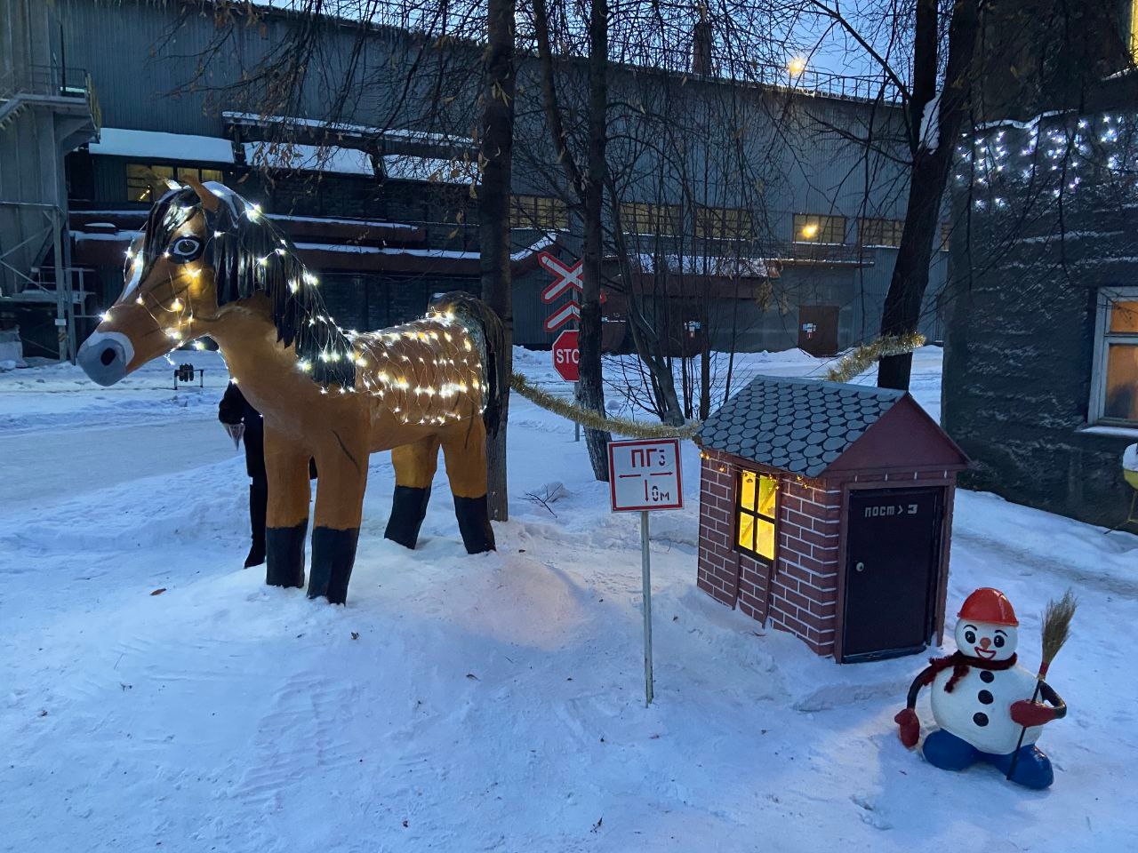 Грациозные скакуны, огнегривые кони и изящные лошади украсили территорию завода «Кузнецкие ферросплавы» на период зимних праздников. И всё это создано руками работников!