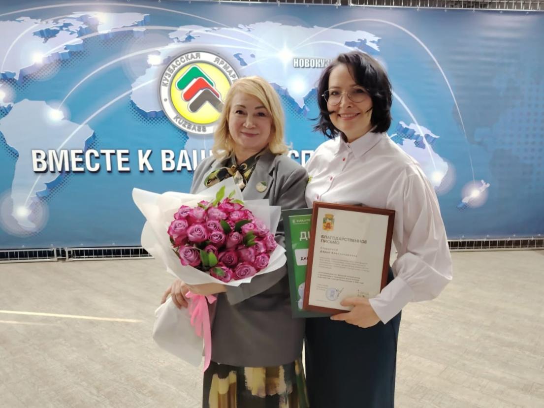 Ей вручили благодарственное письмо администрации города как организатору всероссийских экологических соревнований «Чистые игры» в Новокузнецке, а также диплом участника «Экотрекера зелёных привычек» от Всероссийского общественного движения «Экосистема».